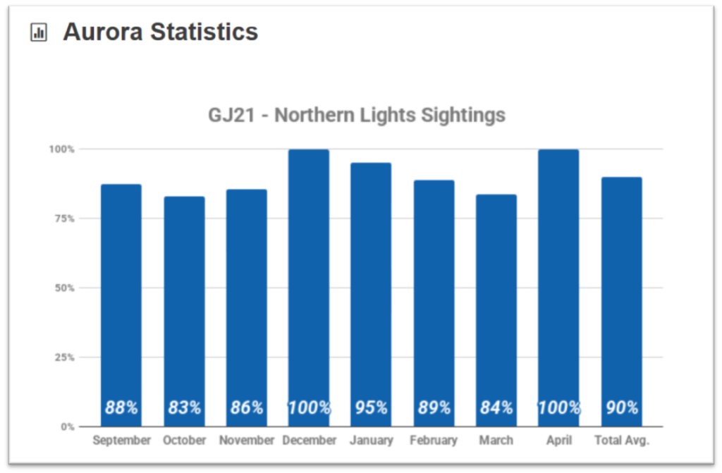 The Northern Lights season is from September to mid-April. We carefully choose locations to maximize your chances to see the northern lights with the help of a professional tour guide.